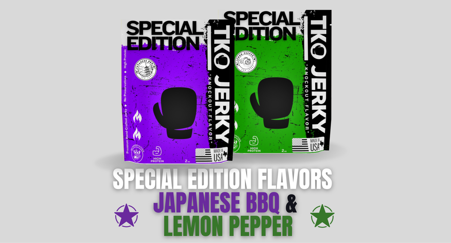 Standing at 6 foot... Just kidding! You know "We Make Damn Good Jerky" and we have two exciting new flavors for you from our family to yours! Introducing TKO Jerky Special Edition Japanese BBQ and TKO Jerky Special Edition Lemon Pepper.