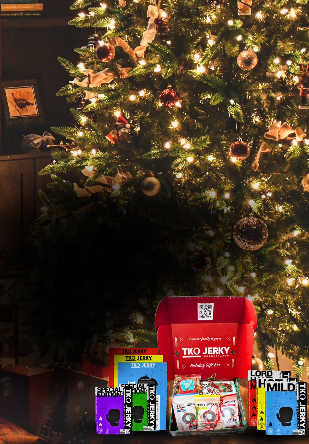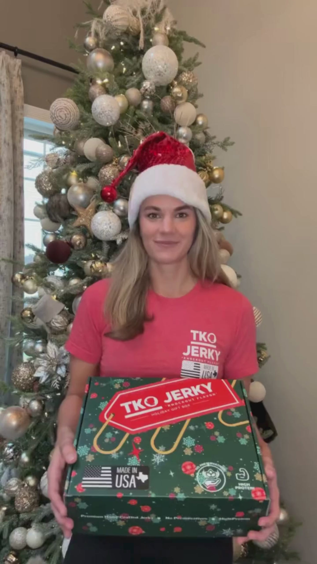 Happy Holidays from our family @ TKO Jerky to yours!Β Contents:β’ 5 x 2oz variety pack (x1 Mild, x1 Hot, x1 LHM, x1 Lemon Pepper, & x1 Japanese BBQ)β’ Chocolate-covered pretzels from Kilwinβsβ’ Multiple holiday-themed cake pops fromΒ Treat Box